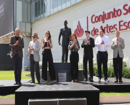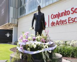 Después de los discursos, se colocó un arreglo floral en la base de la estatua del licenciado Raúl Padilla, la cual está ubicada en la Plaza Bicentenario, a un costado del ingreso principal del Conjunto Santander de Artes Escénicas.